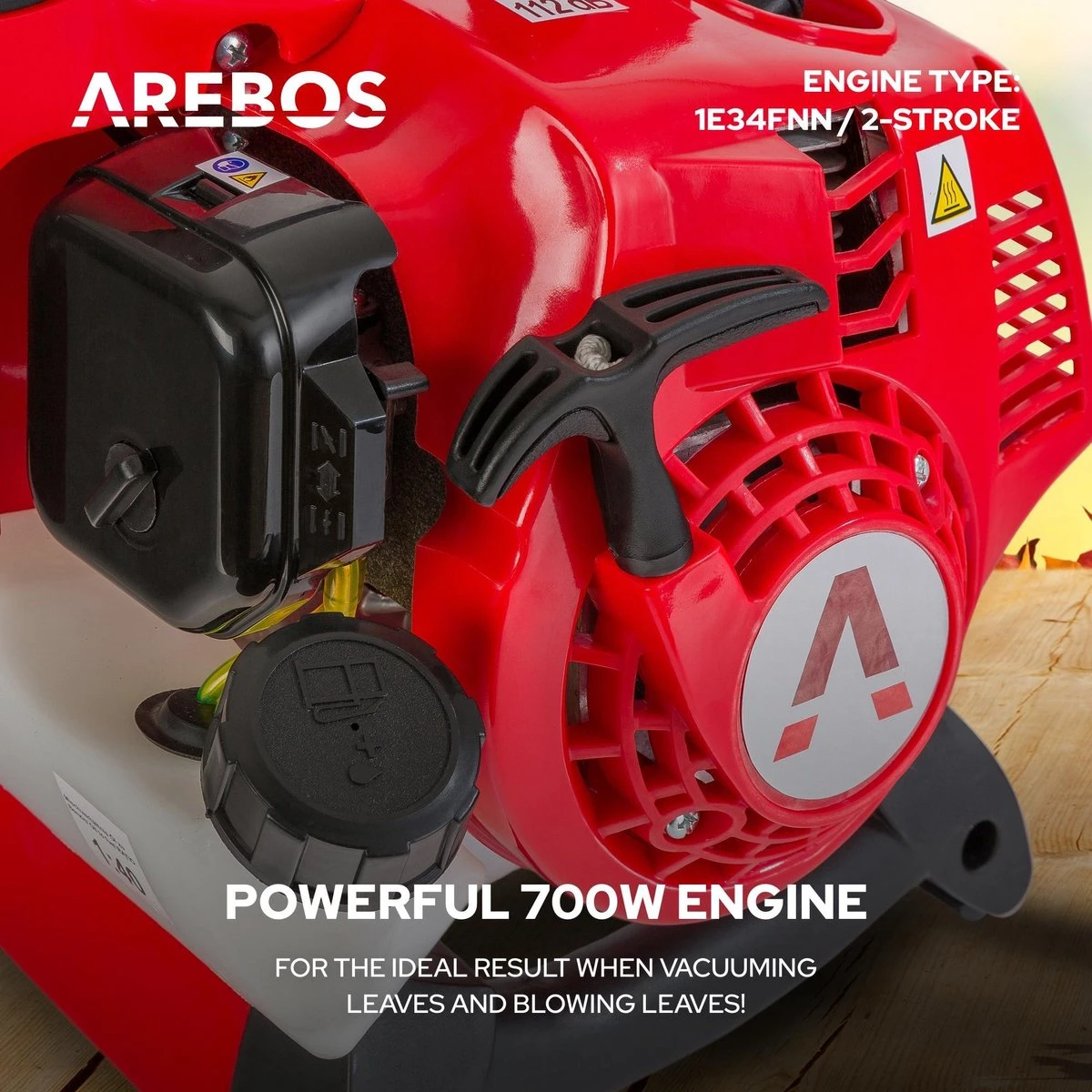 Avec l’aspirateur à feuilles à essence AREBOS, vous pouvez facilement enlever les feuilles des trottoirs et des allées. Vous pouvez utiliser l’interrupteur intégré pour sélectionner la fonction d’aspiration ou de soufflage wens . La commande sans fil augmente la mobilité, facilitant le travail sur les trottoirs publics ou les terrains plus grands.