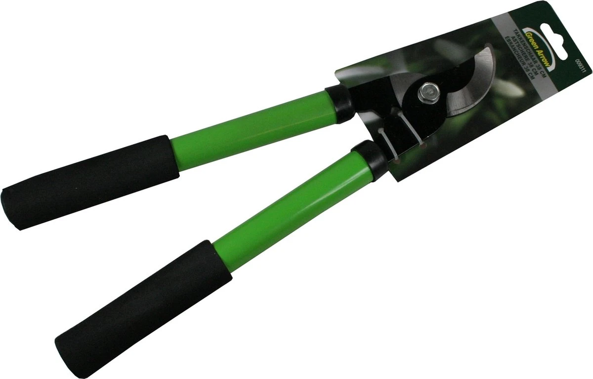 Loppers Small avec enclume 38 cm Ces élagueurs avec enclume conviennent pour la taille des branches mortes jusqu’à un diamètre de 30 mm. Ce lopper est plus léger et les bras sont plus rapprochés que les autres loppers, ce qui le rend facile à manipuler pour les femmes. Les lames des ébrancheurs sont fabriquées en acier au carbone Sk5 de haute qualité, ce qui garantit une belle coupe droite et nette. Les couteaux ont un revêtement en téflon qui facilite la coupe et le nettoyage. Les bras en aluminium sont munis de poignées antidérapantes pour une meilleure prise en main. Caractéristiques :