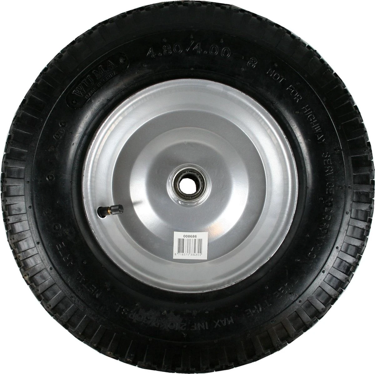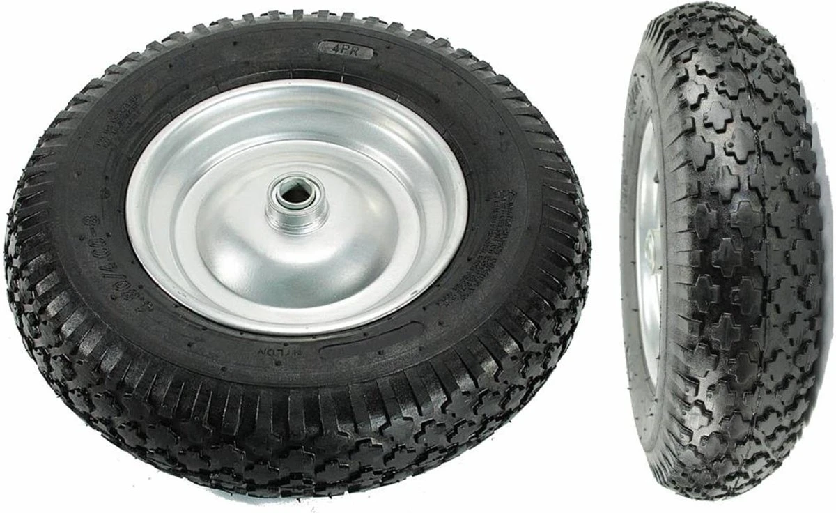 Benson Roue De Brouette Avec Pneu Pneumatique, Jante En Acier Argenté, 4.80 / 4.00-8 | Diamètre Du Trou D’axe 20 Mm Roulement à Rouleaux | Jante En Acier | Hauteur De La Roue 39 Cm