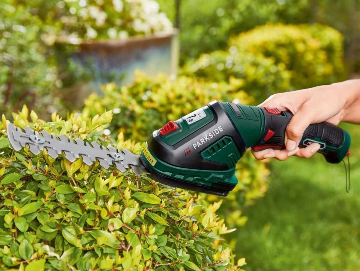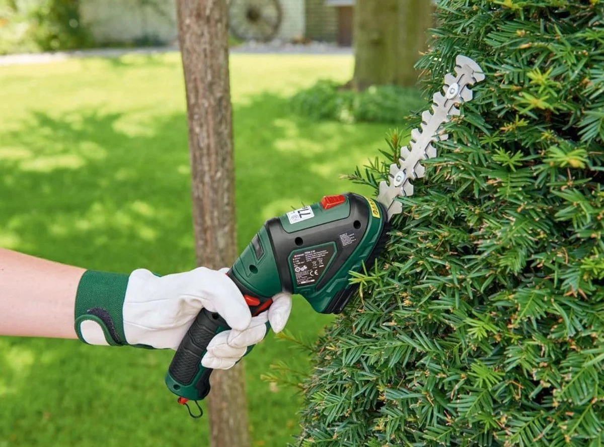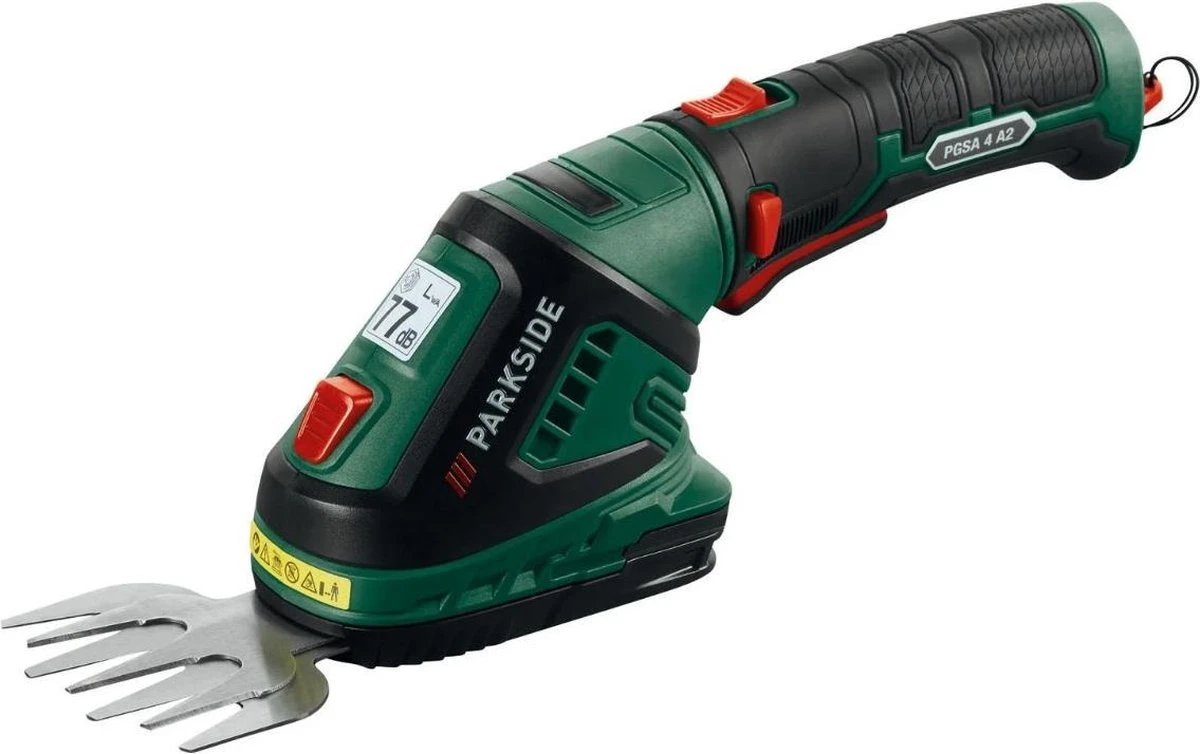 - Les cisailles ont 1 cisaille à gazon d’une largeur de 8 cm et 1 cisaille à arbustes avec une longueur de coupe de 12 cm et une épaisseur de coupe jusqu’à 8 mm