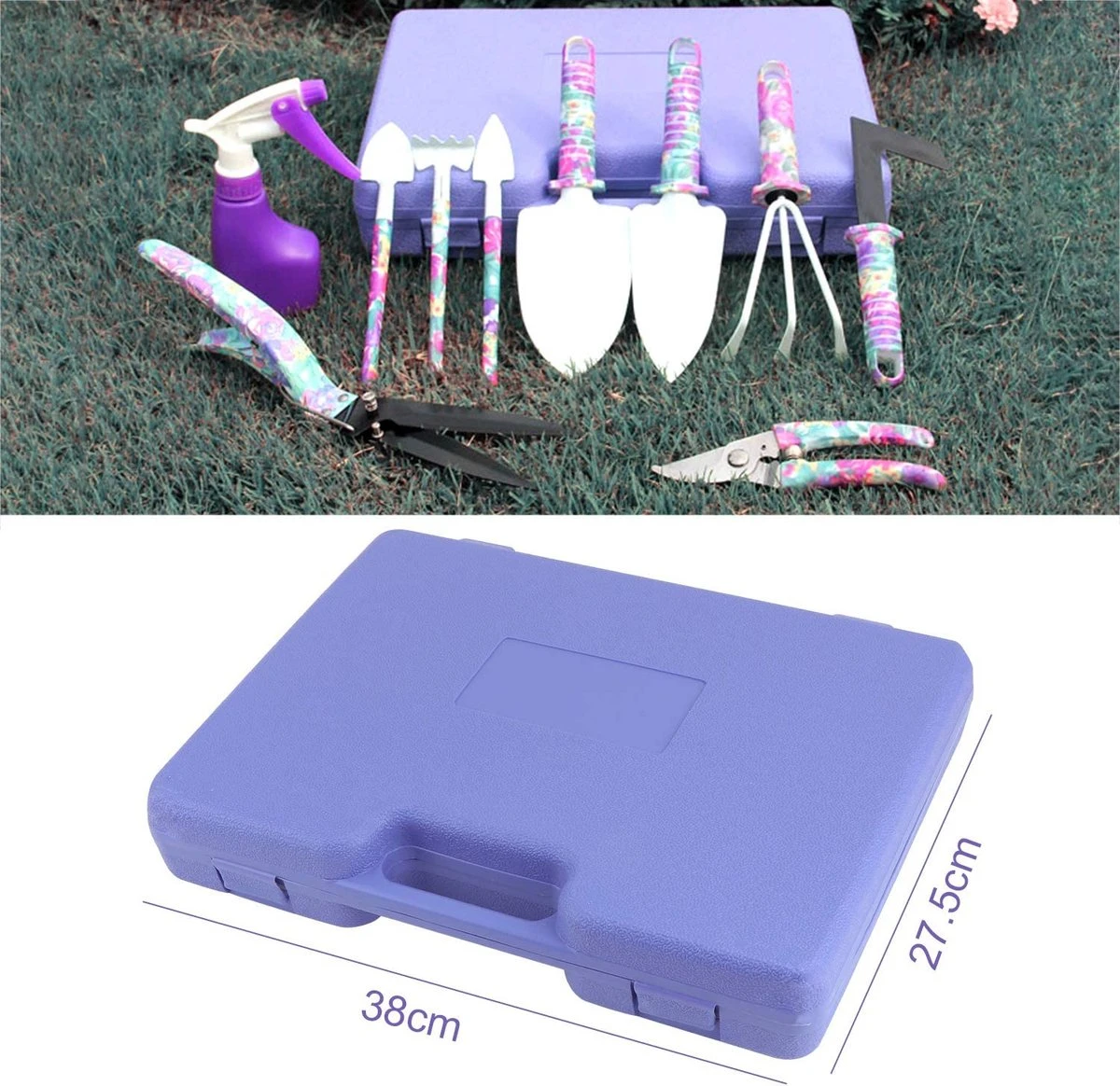 Coolty Ensemble D’outils De Jardin, 10 Outils De Jardin Avec Imprimé Fleur Lilas, Poignée Ergonomique, Pelle, Bêche, Râteau, Gland, Ciseaux De Jardin, Pulvérisateur Avec Sac De Transport