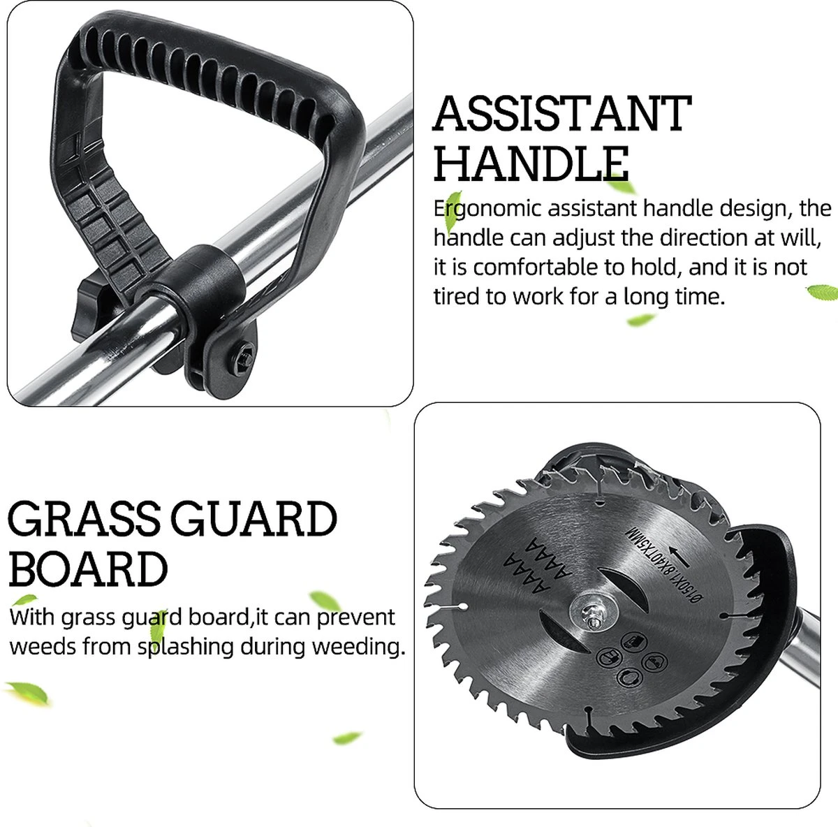 - Avec le panneau de protection de l’herbe, il peut empêcher les mauvaises herbes d’éclabousser pendant le désherbage.