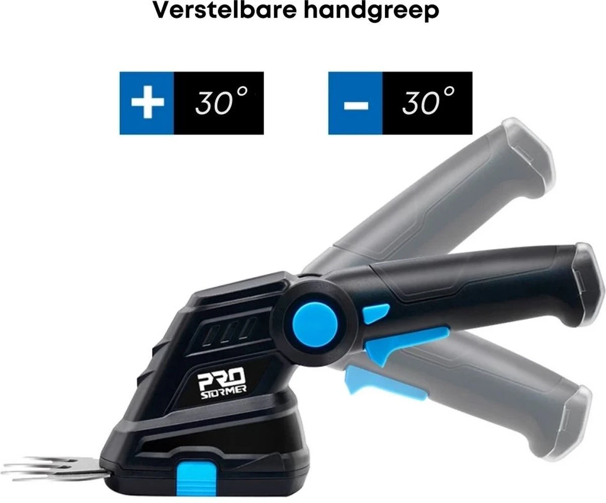 La poignée ergonomique vous permet de régler facilement l’angle de -30° à 30°, de sorte que vous puissiez atteindre sans effort chaque partie de la haie ou de l’herbe.