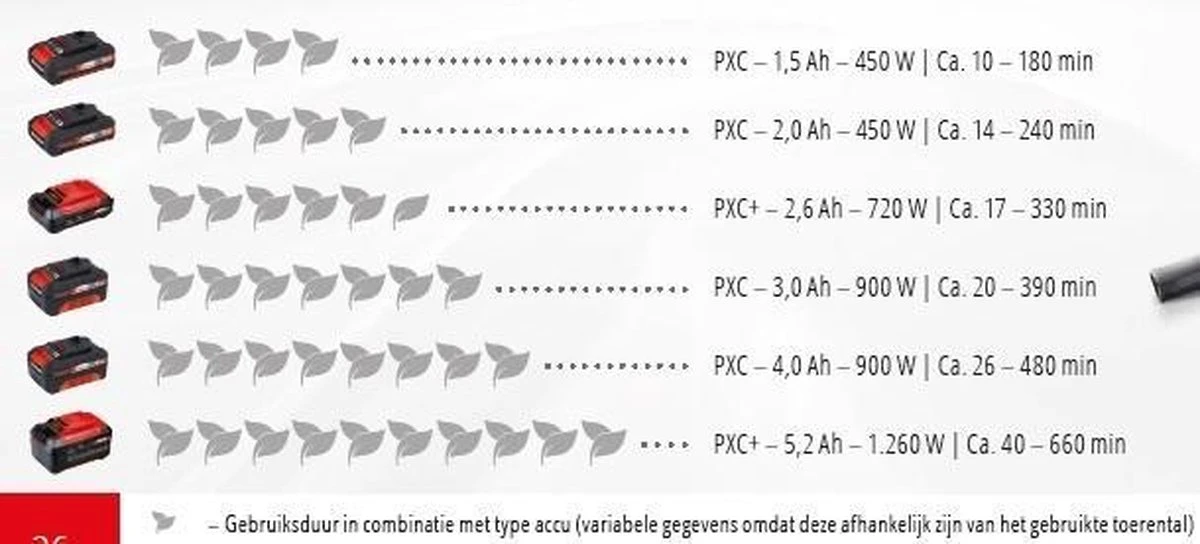 En raison des possibilités techniques actuelles avec les batteries lithium-ion, EINHELL a également développé une gamme de produits complète dans laquelle les batteries sont interchangeables entre les machines Tools et Garden. Einhell Power X-Change. Presque tous les articles de la gamme de produits Power-X-Change peuvent être achetés en version «SOLO» (sans batterie et chargeur) ou en version «KIT» (y compris batterie et chargeur). Si vous possédez déjà une batterie Power X-Change, il vous suffit d’acheter une machine Solo, cela vous fait économiser beaucoup d’argent! EINHELL ayant développé son propre système de batterie intelligent, vous pouvez continuer à utiliser vos batteries existantes avec les futures machines EINHELL Power X-Change.