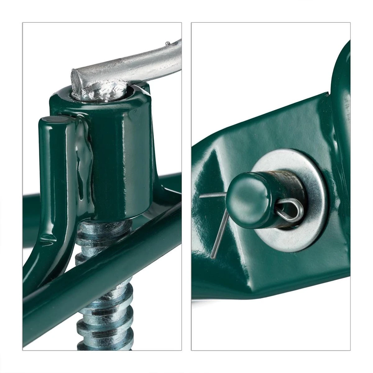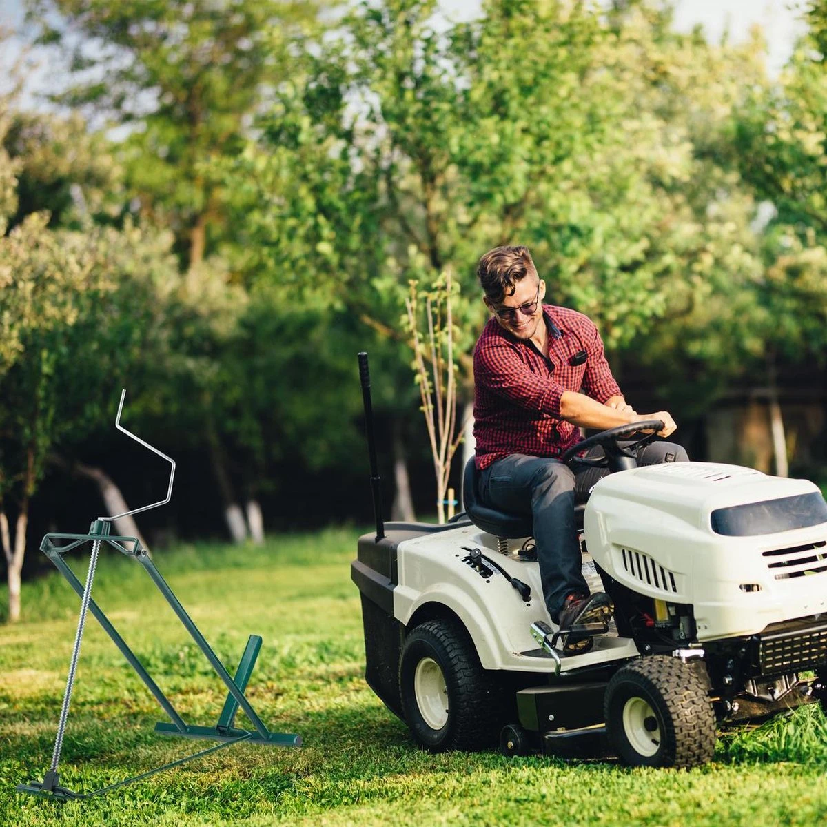 Avec cet élévateur pratique, vous pouvez facilement soulever différents types de petits tracteurs, tondeuses autoportées et quads. Le nettoyage de la tondeuse, l’entretien et la réparation sont donc rapides et faciles. Le relevage de la tondeuse autoportée peut être réglé en continu jusqu’à un angle d’environ 45 degrés. La construction en acier solide du lève-personne peut supporter un poids allant jusqu’à 400 kg et est stable et sûre au sol. Lève tondeuse autoportée en détail – Dimensions H x L x P: env.130 x 160 x 60 cm – Dimensions pliées H x L x P: env.8 x 135,5 x 60 cm – Largeur de la surface de conduite: env.120 cm – Largeur de la prise de roue : env.31 cm Plus de détails sur le relevage de la tondeuse autoportée – Capacité de charge: env.400 kg – Poids: env.11,8 kg – Matériau: acier – Couleur: vert Dispositif de levage de tondeuse à gazon robuste – Pour toutes les tondeuses autoportées, quads et petits tracteurs – Nettoyage facile, entretien et réparation – Construction en acier stable et sûre, robuste – Levage facile grâce à la broche manuelle – Angle réglable en continu jusqu’à environ 45 degrés – Pliage peu encombrant lorsqu’il n’est pas utilisé Contenu de la livraison – 1 x élévateur de coupe – Manuel en anglais – Décoration non comprise dans la livraison