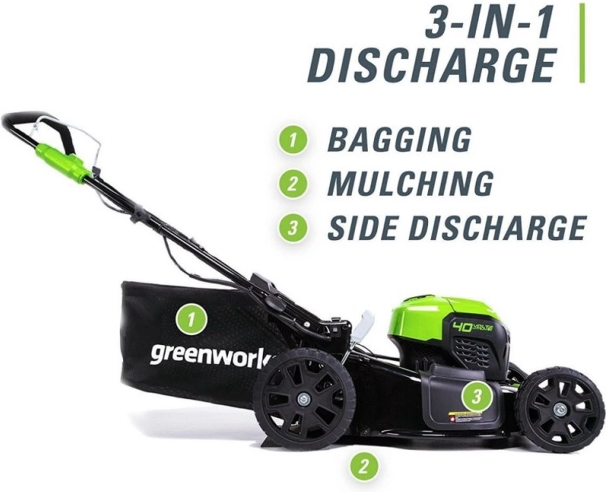 La tondeuse G40LM46SP est une tondeuse 3 en 1. Ainsi, vous pouvez utiliser le sac de ramassage, décharger l’herbe par la décharge latérale et la laisser là, ou vous pouvez pailler (réduire) l’herbe et la laisser là.
