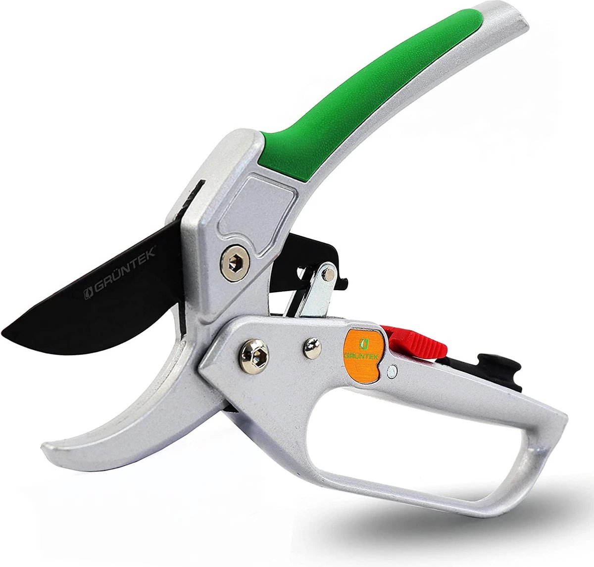 GRÜNTEK Sécateur CONDOR 200 Mm, Cliquet Automatique, Ø20 Mm, Lame SK5, Poignées En Aluminium Avec Revêtement En PVC, Avec éponge à Huile Et Affûteur