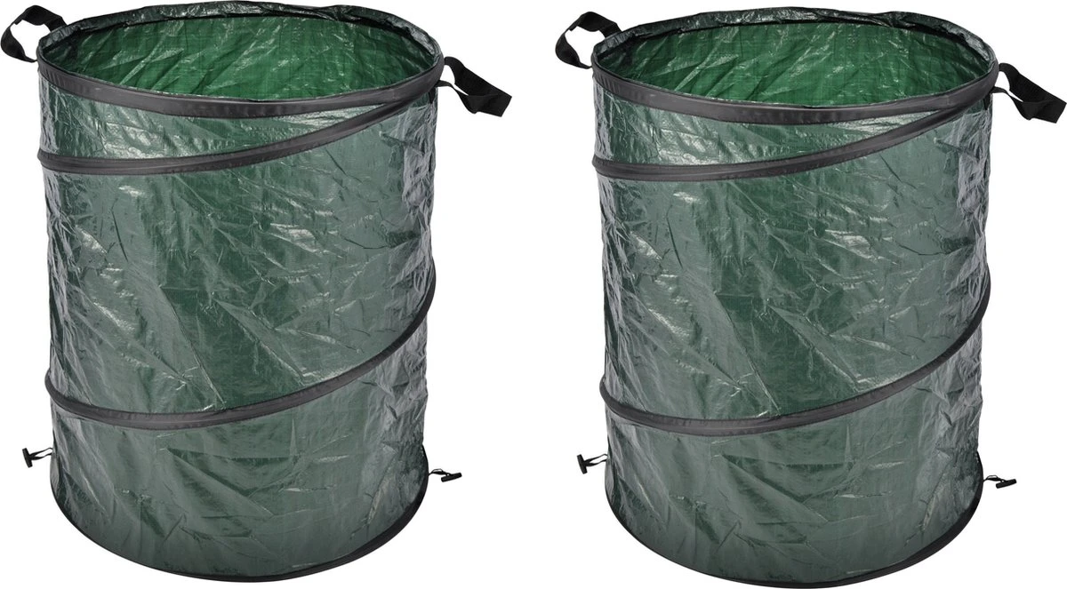 2x morceaux de sac de déchets de jardin pop-up vert 130 litres. Un sac pliable pratique, par exemple, pour ramasser les feuilles du jardin afin de ne pas avoir à marcher tout le temps jusqu’au récipient. Après avoir été vidé, le sac à ordures peut facilement être replié. Le sac poubelle a 3 poignées. Taille : environ 68 cm de hauteur et 55 cm de diamètre. Capacité : environ 130 litres. Matériel: polyéthylène (plastique). Entretien du jardin / accessoires de jardinage sacs à déchets / sac à feuilles.