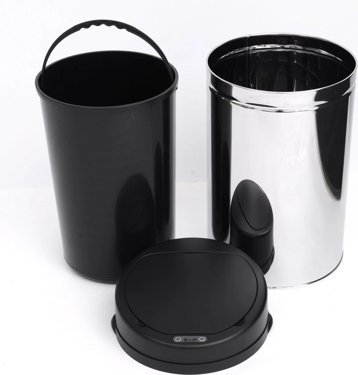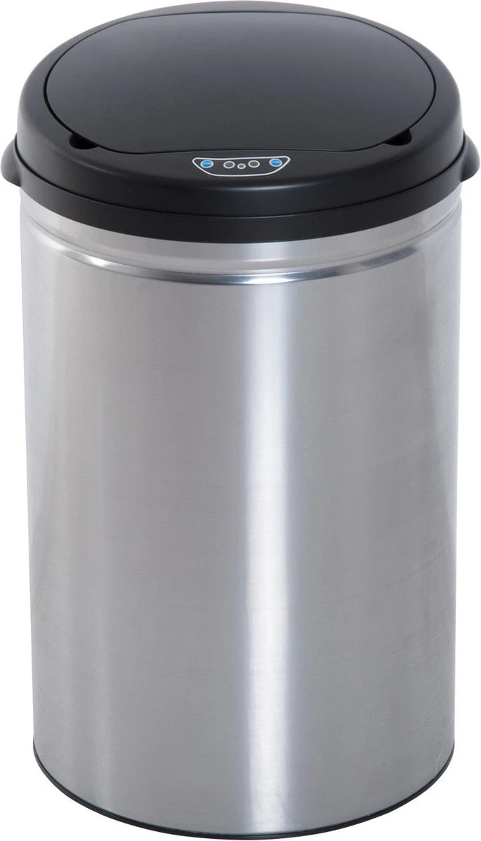 Capacité : 30 l Technologie de capteur : infrarouge Dimensions d’encombrement : Ø 30,5 x H 51,5 cm Couvercle : ABS Boîtier : acier inoxydable, hautement poli Seau intérieur : PP Nécessite 4 piles AA (non fournies) Poids : 2,6 kg