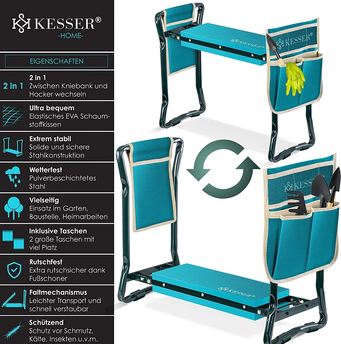 - Ergonomique et durable : le jardinage peut prendre plus de temps, même votre dos et vos genoux ne devraient pas en souffrir. Avec le tabouret de jardin de haute qualité de KESSER, il y a maintenant un soulagement, car grâce au coussin en mousse EVA élastique et flexible, vous vous agenouillez ou vous asseyez très confortablement. Avec une capacité de charge maximale de 150 kg, ils sont bien protégés contre les sols durs et les irrégularités. Vos genoux vous remercieront !