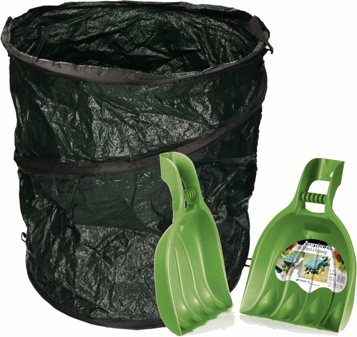 Sac à déchets de jardin vert pliable 90 litres avec un jeu de râteaux à feuilles / pinces à déchets de jardin. Sac pliable pratique, par exemple pour ramasser les feuilles du jardin afin de ne pas avoir à continuer à marcher vers le conteneur. Après avoir été vidé, le sac à ordures peut facilement être replié. Dimensions : environ D45 x H 58 cm. Contenu: environ 90 litres. Matériel: polyéthylène (plastique). Et un ensemble de 2 pinces à feuilles / râteaux à main, avec lesquels vous pouvez facilement ramasser un tas de feuilles ou d’autres déchets de jardin et les jeter sans vous salir les mains! Dimensions : environ 39 x 30 cm. Matériau : plastique. Entretien du jardin / accessoires de jardinage sacs à déchets / sac à feuilles. composé de 1x sac à déchets de jardin pop-up Donkergreen 90 litres, 1x Un ensemble de 2 pièces de pinces à feuilles en plastique / râteaux à main 39 cm