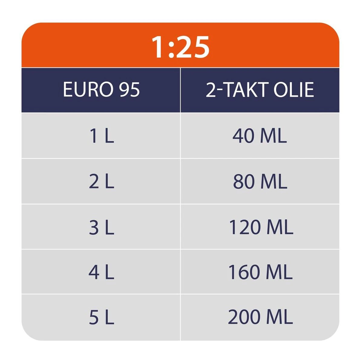 En raison de la récente modification de la loi, la plupart des stations-service proposent E10 en standard au lieu de l’ancien Euro 95 (E5). E10 convient nepas à nos outils de jardin à essence. Par conséquent, utilisez Euro 98 pour préparer une lubrification mixte. Avez-vous accidentellement rempli E10? Vider le réservoir de carburant et mélanger avec Euro 98. Les dommages causés par une utilisation à long terme de E10 ne sont pas couverts par la garantie. En savoir plus sur l’utilisation de l’E10 dans les outils de jardinage à essence ici.