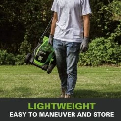 Greenworks 2516107UB Tondeuse à Gazon Marcher Derrière Un Tracteur Tondeuse Batterie Noir, Vert