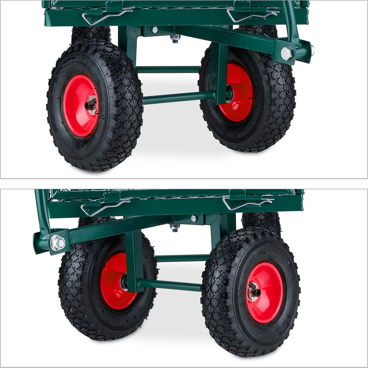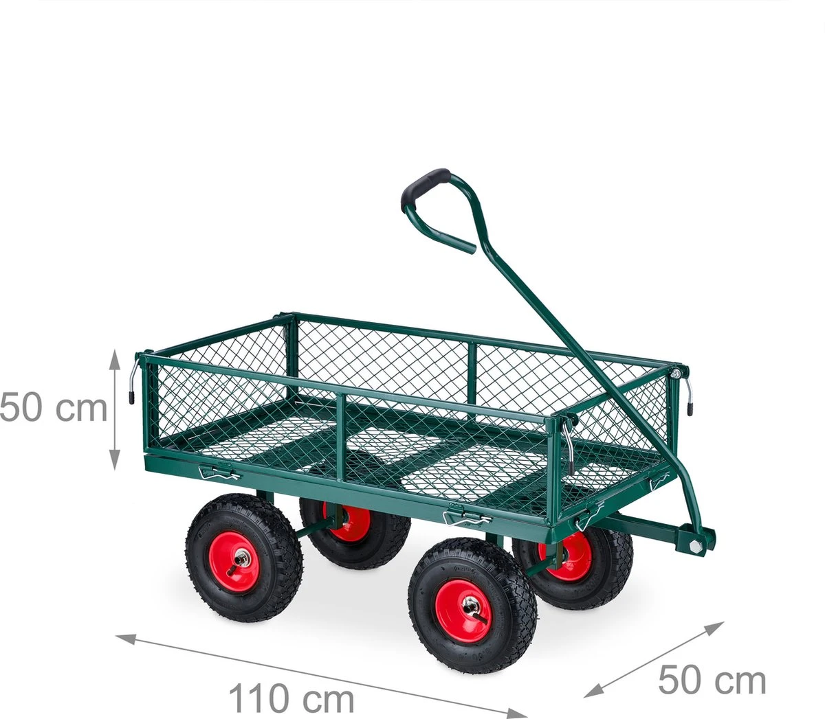 La grande charrette à bras en acier est pratique aussi bien dans le jardin que pour faire les courses. Mais bien sûr, il peut également être utilisé pour transporter de la nourriture et des boissons lorsque vous partez en pique-nique avec vos amis.