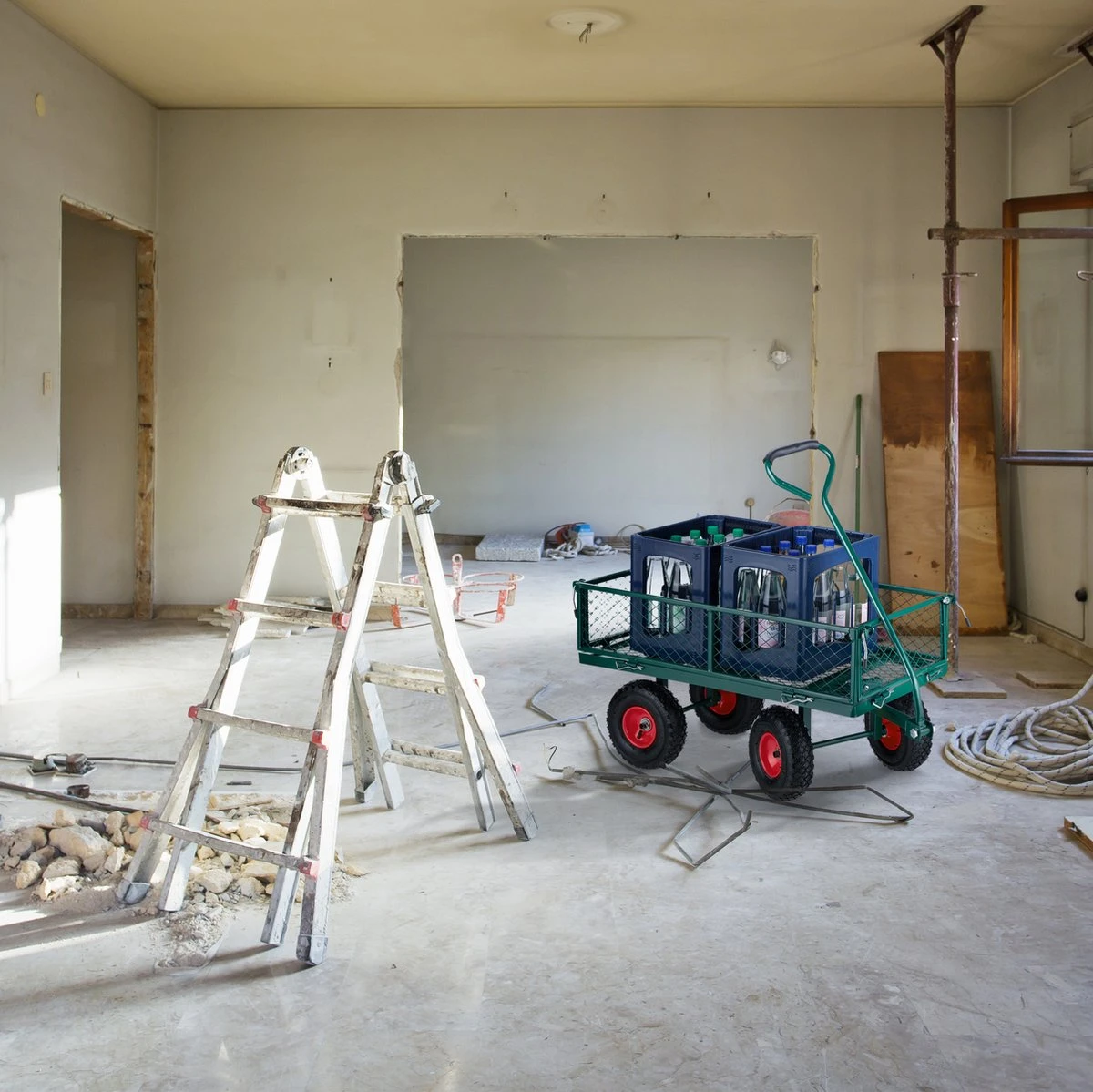 Avec cette charrette pratique, une charge est littéralement soulevée de vos épaules. Vous pouvez facilement transporter des caisses, des matériaux de construction pour les rénovations ou de la nourriture et des boissons pour les festivals. Comme la charrette à bras peut supporter un poids important, vous pouvez utiliser de manière optimale l’espace de chargement dans la charrette. Les 2 essieux et les pneumatiques profilés garantissent que vous pouvez également courir comme une voiture sur des surfaces inégales. Pour charger et décharger les articles, vous pouvez facilement rabattre ou retirer les 4 côtés du chariot à tirer.