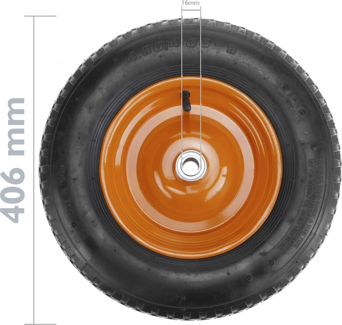 - Taille des roues (diamètre x largeur) : 16 x 4 pouces (406 x 102 mm).