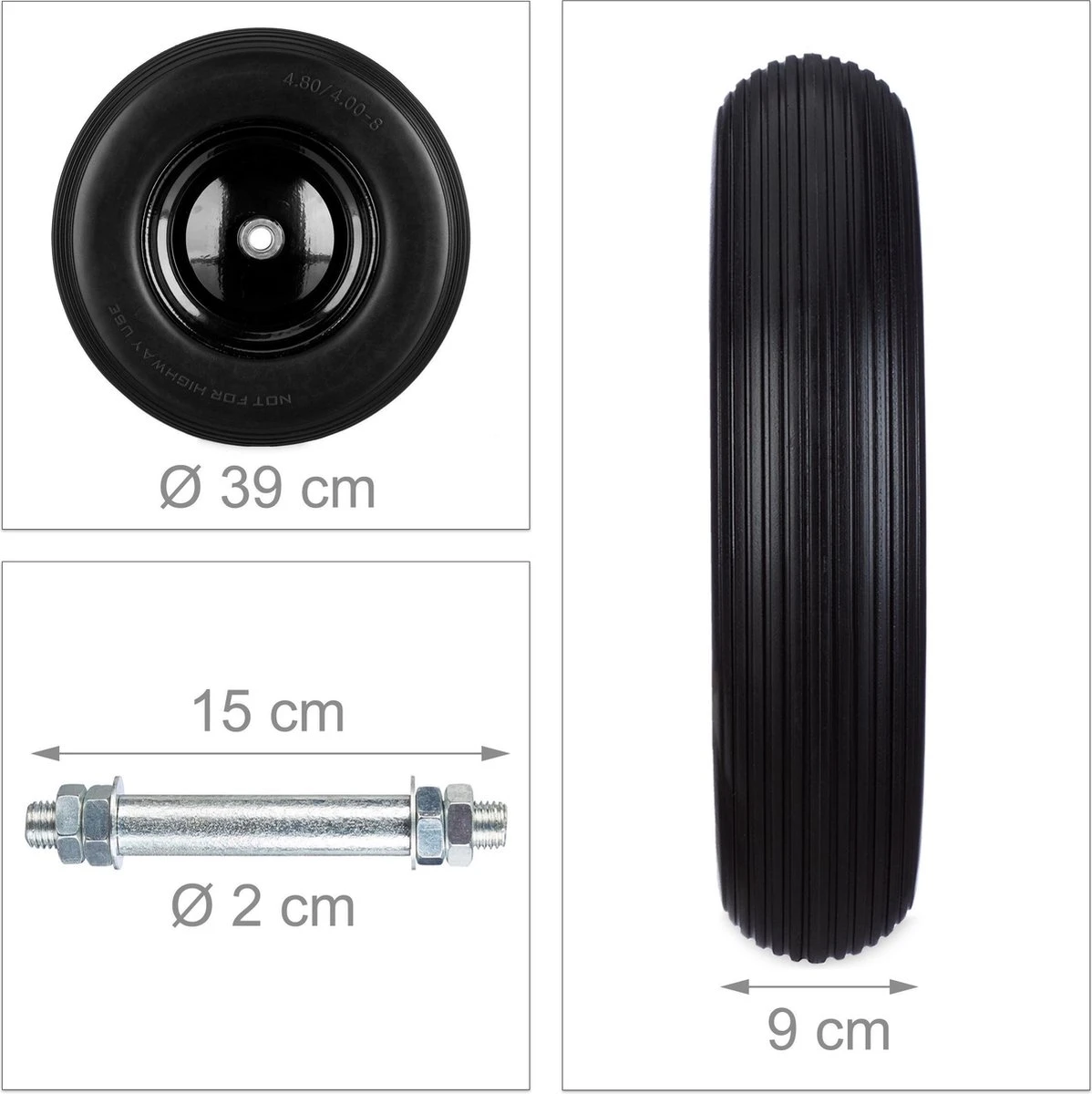 Relaxdays 4x Roue De Brouette Caoutchouc – Roue De Wagon Avec Axe – Pneu Anti-crevaison Jante Acier Noir