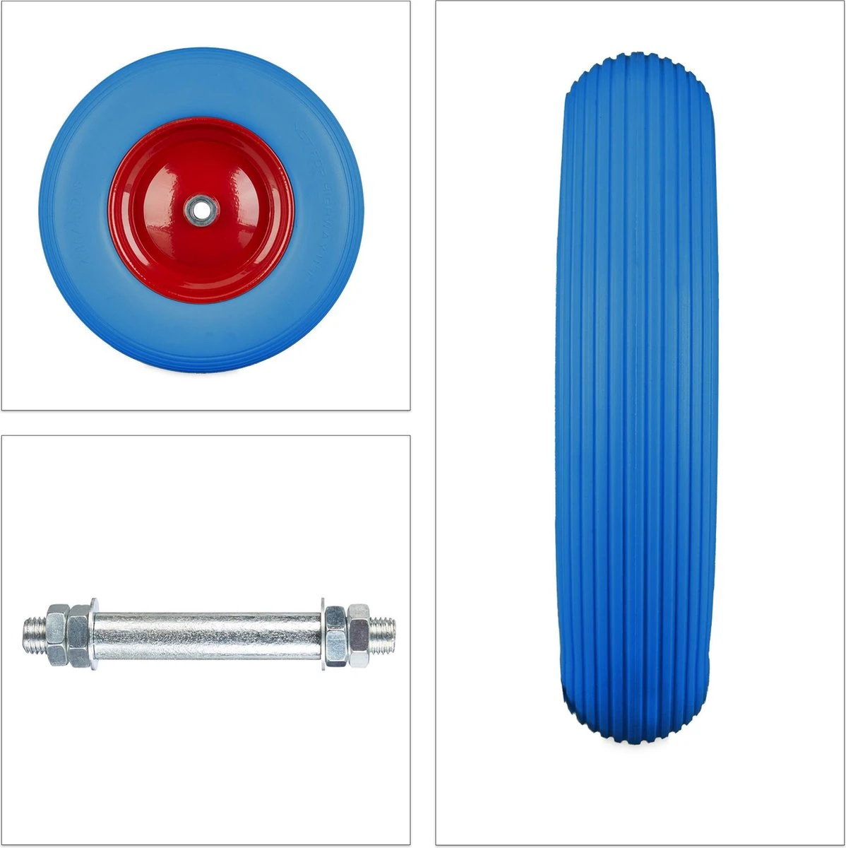 Relaxdays 4x Roue De Brouette Caoutchouc – Roue De Wagon Avec Essieu – Pneu Anti-crevaison Jante Acier Bleu