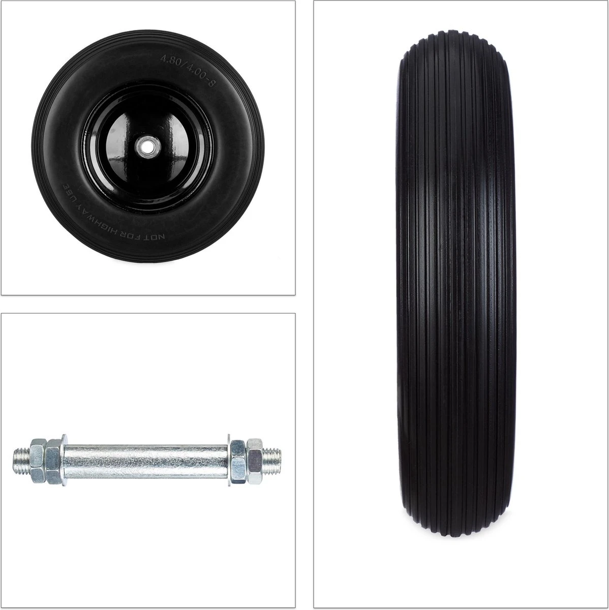 Relaxdays Roue De Brouette En Caoutchouc – Roue De Brouette Avec Essieu – Jante En Acier Anti-déversement Schwarz-Schwarz