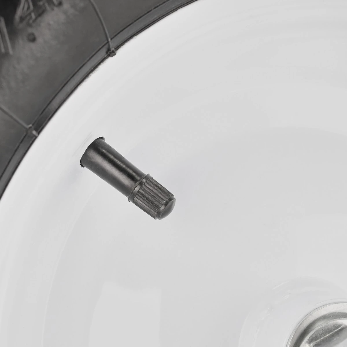 Si vous avez besoin d’une nieuw roue pour votre brouette, procurez-vous une roue de secours à air avec la roue 4.80 4.00-8 pour le meilleur confort de conduite. Le pneumatique est prêt à l’emploi après gonflage via la valve de la voiture. L’axe fourni avec roulement à billes et bande de roulement avec profil facilite la poussée de la brouette même avec un poids élevé jusqu’à 120 kg. La jante en acier robuste en blanc offre une stabilité supplémentaire.
