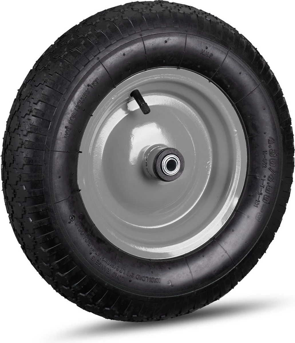 Si vous avez besoin d’une nieuw roue pour votre brouette, procurez-vous une roue de secours à air pour le meilleur confort de conduite avec le pneu de brouette 4.80 4.00-8. La roue de jante en acier est remplie d’air, ce qui la rend facile à tourner et absorbe bien les chocs. Le roulement à aiguilles et la bande de roulement profilée facilitent la poussée de la brouette même à poids élevé. Les adaptateurs inclus sont particulièrement pratiques, de sorte que la roue peut être utilisée pour différentes tailles d’essieux. Pneu de roue de brouette en détail – Roue: 4.80 4.00-8 – Diamètre de la roue: environ 39 cm – Largeur de la roue: environ 9 cm – Poids: environ 2,3 kg – Capacité de charge: max.120 kg Roue de secours sans essieu – Diamètre intérieur de l’essieu ( sans adaptateur): environ 2,5 cm – Longueur du moyeu: environ 9,5 cm – Diamètre intérieur de l’adaptateur: environ 2,2, 1,7, 1,3 cm – Diamètre de la jante: environ 22,5 cm – Matériau: caoutchouc, nylon, acier Rempli d’air pneu en caoutchouc – Pneu de brouette pour le gonflage – Pour une conduite facile sur terrain accidenté – Avec roulement à aiguilles pour plus de confort de conduite – Bande de roulement profilée pour plus de contrôle – 3 adaptateurs pour différentes tailles d’essieu Contenu de la livraison – 1 x pneu de roue de brouette – 3 x adaptateur – L’essieu est inclus avec le livraison non incluse – La Décoration n’est pas incluse dans la livraison