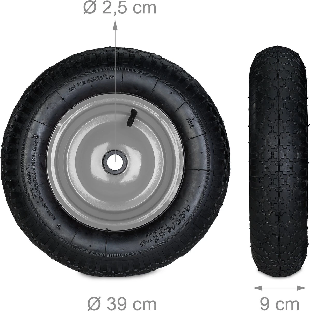 Roue De Brouette Relaxdays 4.80 4.00-8 – Roue De Secours Brouette – Pneu Pneumatique – Avec Adaptateurs Zwart – Gris