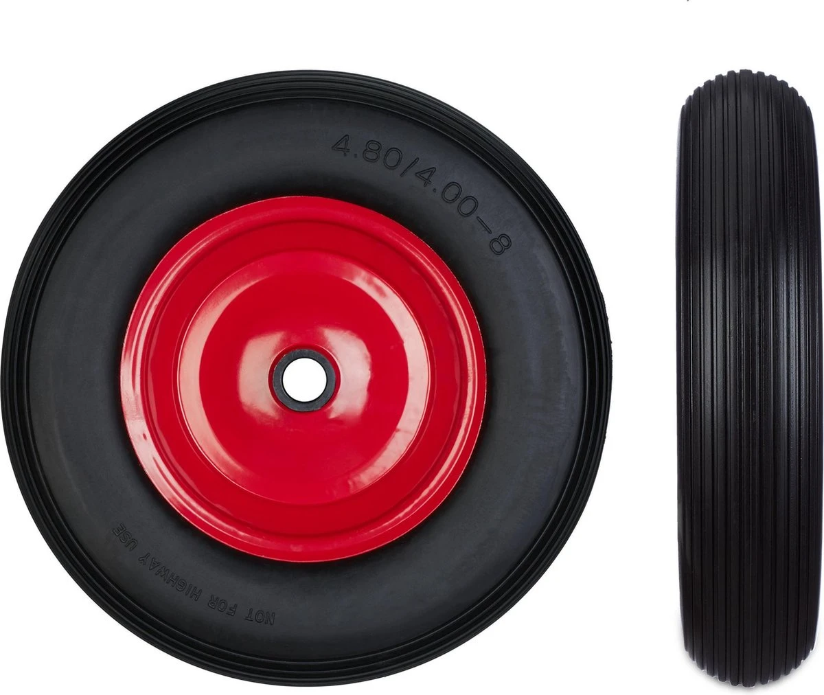 Roue De Brouette Relaxdays Anti Crevaison – 4.80 4.00-8 – 3 Adaptateurs – Jante Acier – Complet Noir-rouge