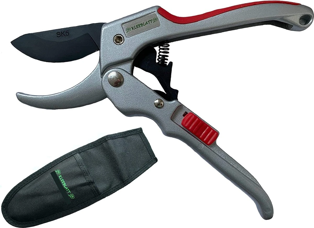 - Coupe respectueuse des plantes. Grâce à leur coupe tirante, les sécateurs Cloverleaf GbR ne provoquent pas d’ecchymoses ni de blessures à l’écorce.
