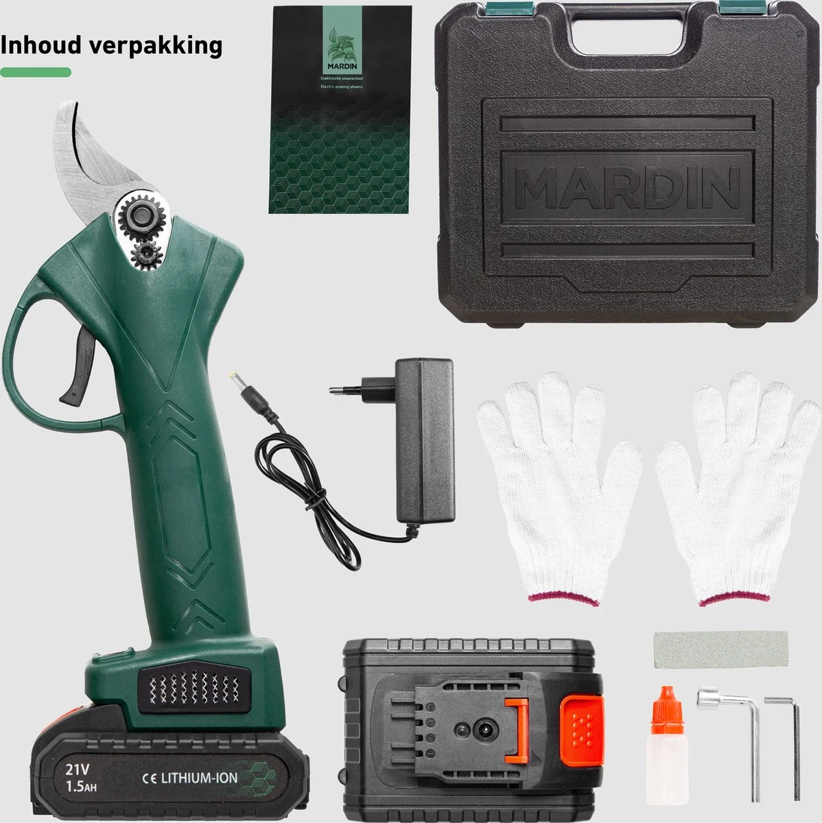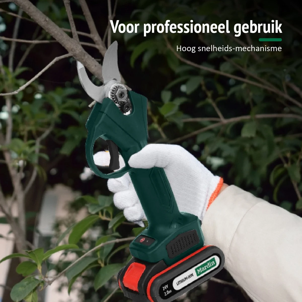 Le sécateur Mardin® est unscie d’élagage électrique puissante que complètementsans fil est. le les ciseaux est livré avec unGRATUITE batterie supplémentaire, un étui de rangement et une bouteille d’huile d’entretien. lescie d’élagage repose confortablement dans la main et a donc leadhérence parfaite pour créer sans effort votreles plantes etdes arbres àtaille. Idéal!
