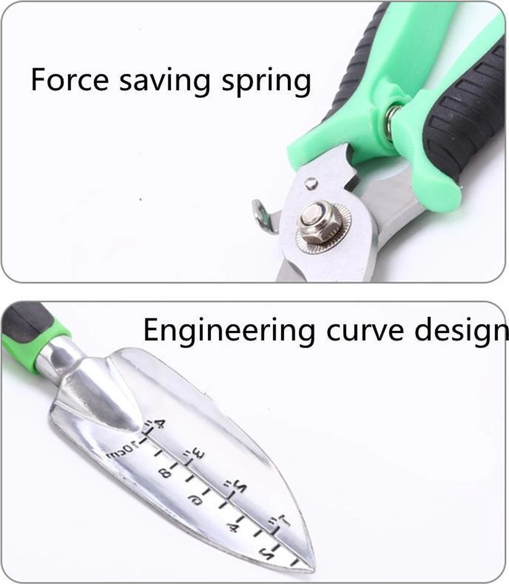 - L’ensemble comprend des ciseaux de contournement, une pelle conique avec pelle graduée, une pelle à plantes, un couteau à désherber, une fourchette à désherber, un râteau, des gants de jardinage, un arroseur et un sac de jardin. Il convient à diverses tâches, telles que creuser, désherber, ratisser, désherber, aérer, transplanter, tailler et arroser, vous permettant d’économiser du temps et de l’énergie lors de l’entretien du jardin.