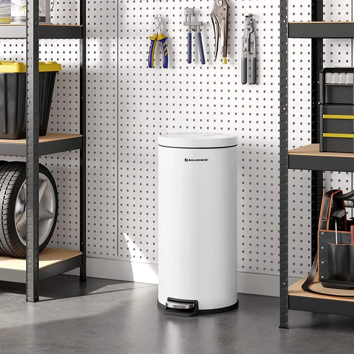 Aide propre pour la maison : dites adieu aux poubelles rouillées et invitez cette poubelle à pédale blanche de 30 litres au design moderne à vous débarrasser de vos déchets
