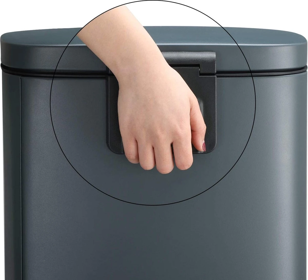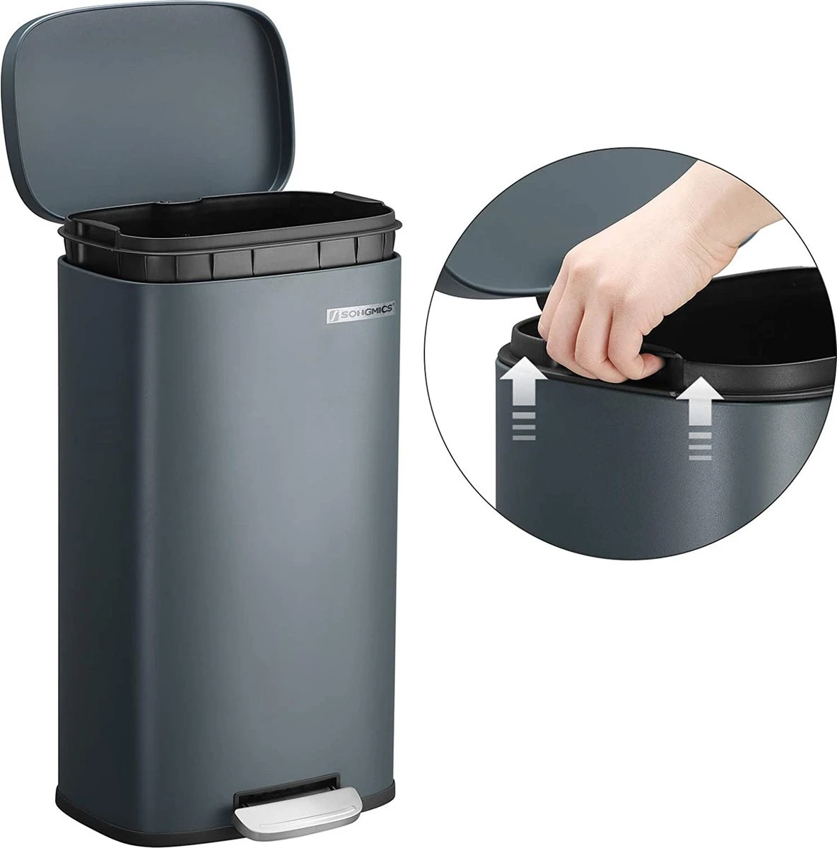 D’un seul pas : tout ce que vous avez à faire est d’appuyer sur la pédale pour ouvrir le couvercle du seau – laissant vos mains libres pour jeter les déchets dans le seau intérieur