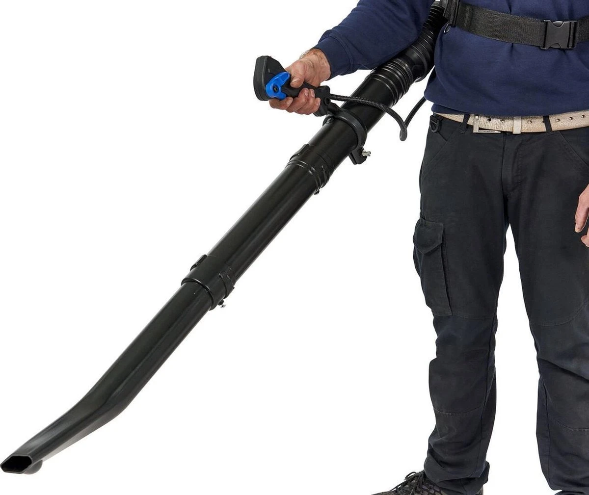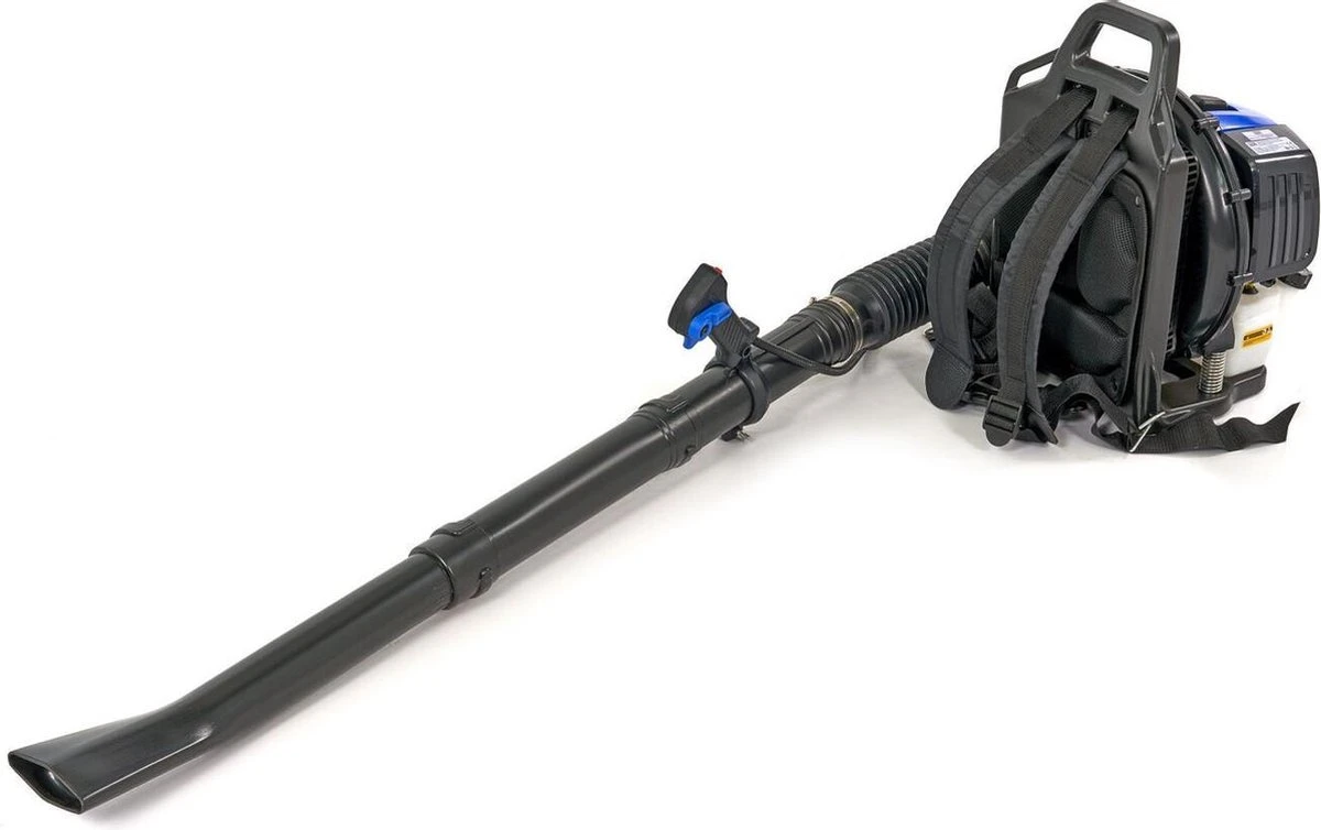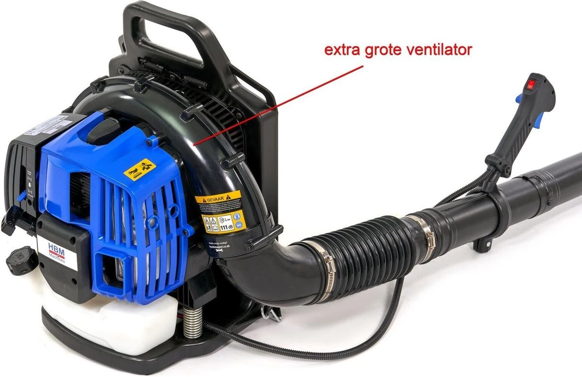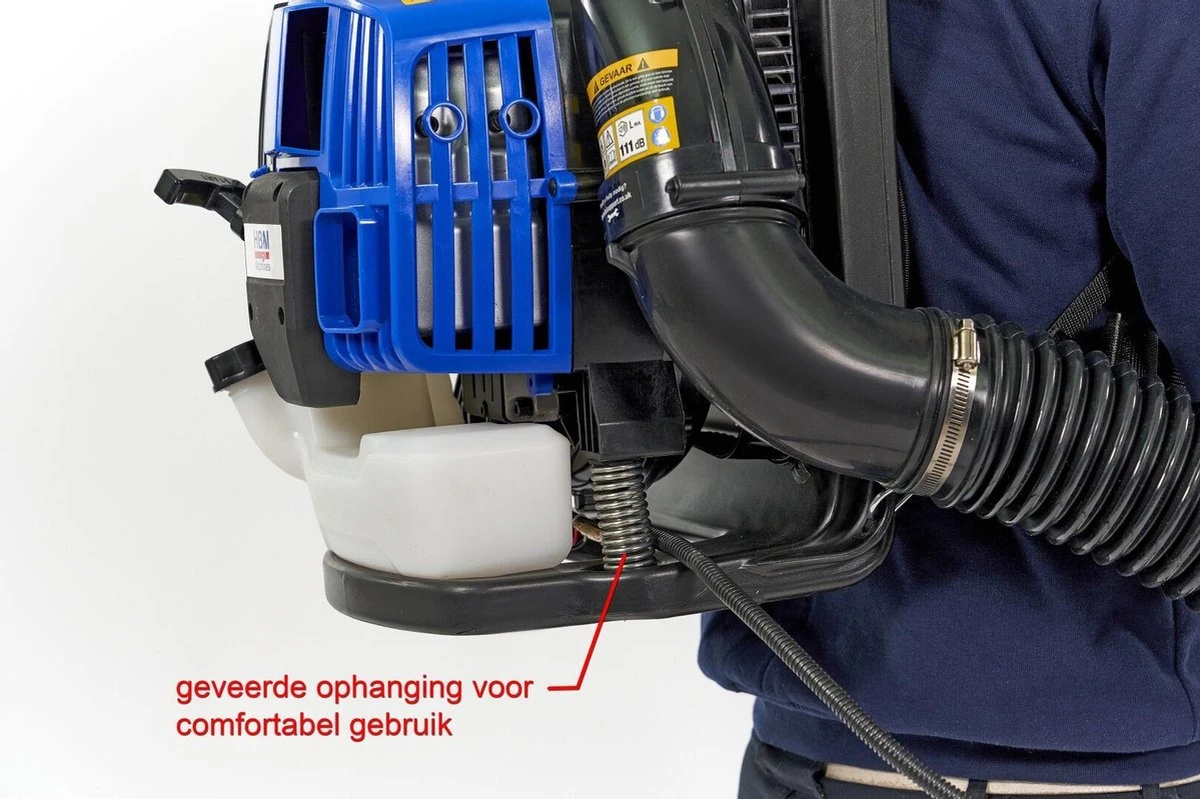 Ce souffleur à dos à 2 temps est léger à transporter et pourtant un poids lourd dans le travail qu’il effectue. Grâce au ventilateur extra large, la force de soufflage de ce souffleur de feuilles très agréable est considérablement plus élevée que celle de la plupart de ses pairs. En plus de la puissance de soufflage supplémentaire, le diamètre extra-large du ventilateur signifie que la vitesse du moteur reste agréable et faible, de sorte que cette machine ne fait pas un bruit de crissement aussi élevé que la plupart des autres souffleuses à feuilles. Ce niveau sonore plus agréable, associé à la suspension à ressort du moteur et aux coussins de dossier en néoprène, garantissent que travailler avec cette puissante machine est très agréable et ergonomique. Le moteur est très facile à démarrer et consomme peu de carburant. Le carburant requis par ce ventilateur est sans plomb 95 (50 pièces), mélangé avec (1 partie) d’huile 2 temps (lubrification mixte 1:50). La manette des gaz est double. Un levier est une gâchette de pistolet, avec laquelle des variations de vitesse à court terme peuvent être effectuées, avec l’autre levier, le gaz est fixé à un certain niveau. Le long bras de soufflage de cette soufflante est en polypropylène moulé par injection et est léger, vous pouvez donc travailler avec cette machine pendant longtemps sans vous fatiguer. Avec la poignée sur le bras de vessie, le bras est déplacé d’avant en arrière et également incliné et donc contrôlé très efficacement. La bouche du bras de la vessie est légèrement aplatie, de sorte que le flux d’air est accéléré à la force des ouragans, et malheureusement le travail agréable avec cette machine se termine rapidement, car vous finissez rapidement de nettoyer les feuilles. Heureusement, il y a des saisons qui font du défrichage un travail récurrent. Un travail qui devient un très beau jeu avec cette machine.