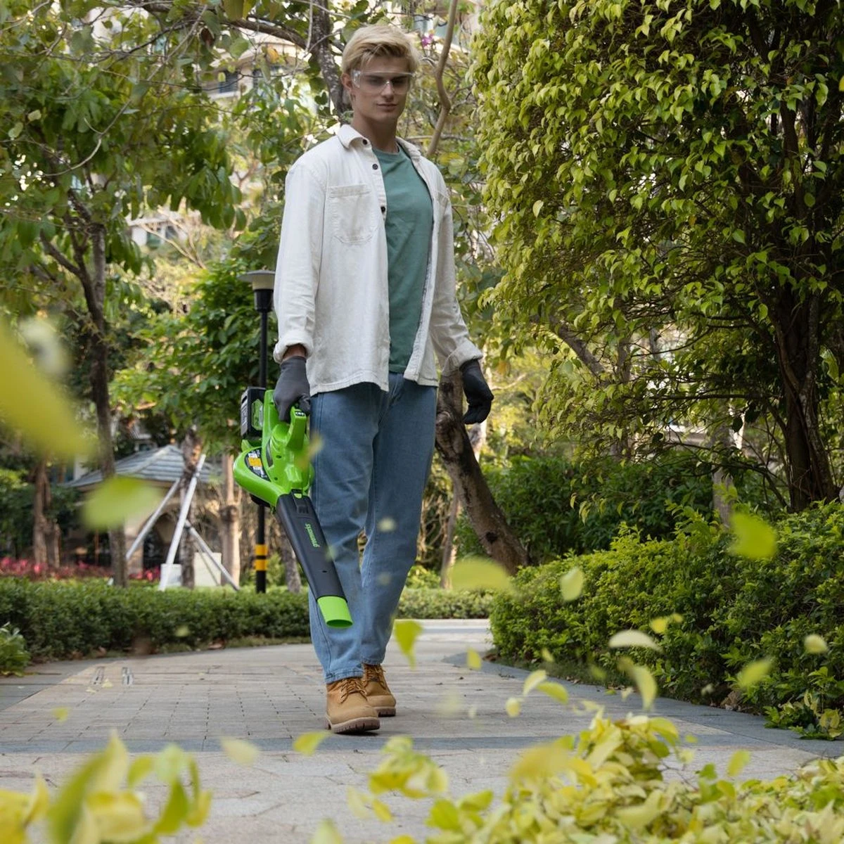 La dernière innovation de Greenworks permet de combiner en série deux batteries V pour entraîner un moteur V . Les avantages incluent une puissance supplémentaire lors du soufflage ou de l’aspiration, tout en utilisant des batteries 24 V compactes qui peuvent être utilisées dans tous les outils Greenworks 24 V, des tondeuses à gazon, des taille-haies, des tronçonneuses et même des outils électriques.