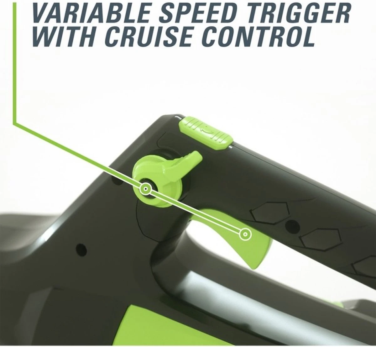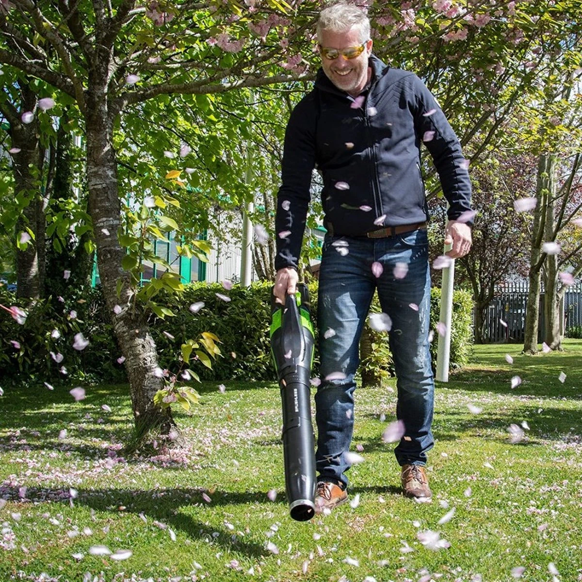 Le souffleur de feuilles à batterie 60 volts Greenworks GD60AB est le souffleur de feuilles à batterie le plus puissant du segment semi-professionnel des souffleurs de feuilles. Le moteur sans balais en carbone DIGIPRO fournit 30% de puissance supplémentaire et 70% de vibrations en moins. Le gros avantage du soufflage sans fil est bien sûr l’absence de rallonges, presque pas de bruit, de faibles coûts de maintenance et aucune consommation de carburant. Calculez simplement ce que cela vous fera économiser si vous n’avez plus à acheter de carburant coûteux. L’ Geen de carburant signifie pas de gaz d’échappement, donc aussi un soufflage de feuilles respectueux de l’environnement.