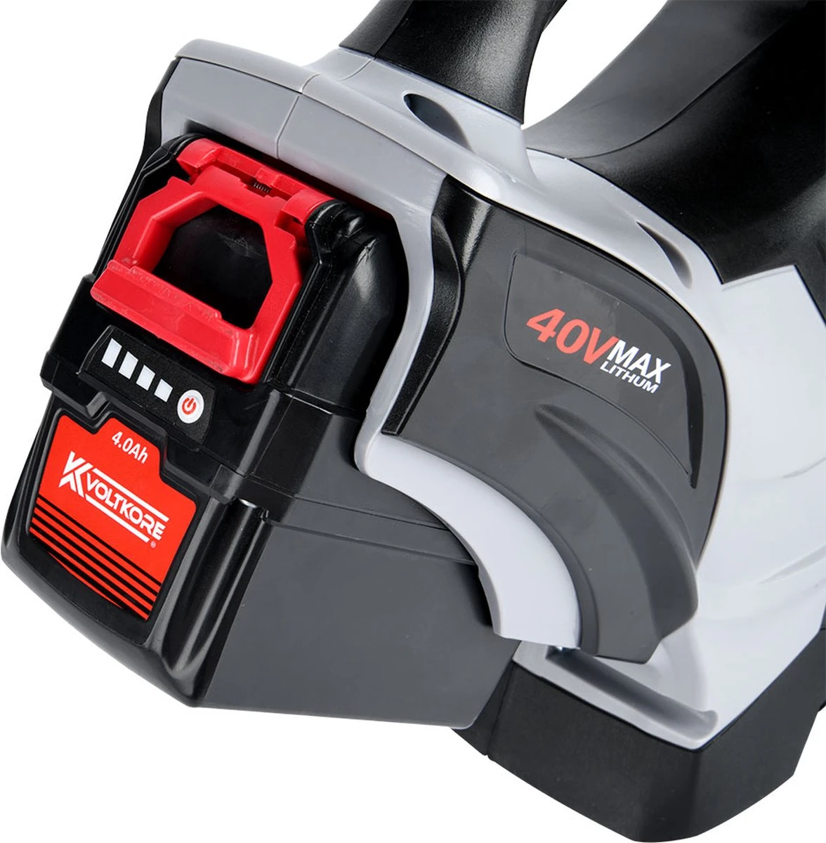 En appuyant sur un bouton, vous obtenez une vitesse de soufflage – jusqu’à 216 km/h – ce qui est idéal pour souffler des feuilles plus lourdes et élaguer les déchets des surfaces dures telles qu’une allée, une terrasse ou une pelouse. Profitez de la liberté du travail sans fil avec ce souffleur de feuilles avec batterie lithium-ion 40V. Geen besoin de carburant !