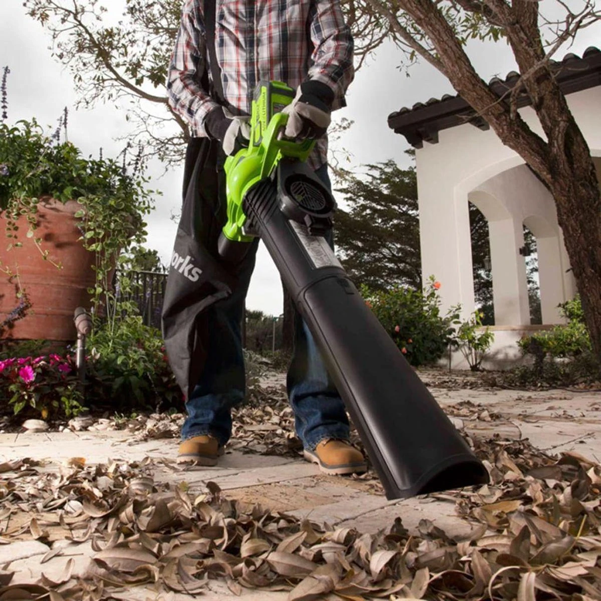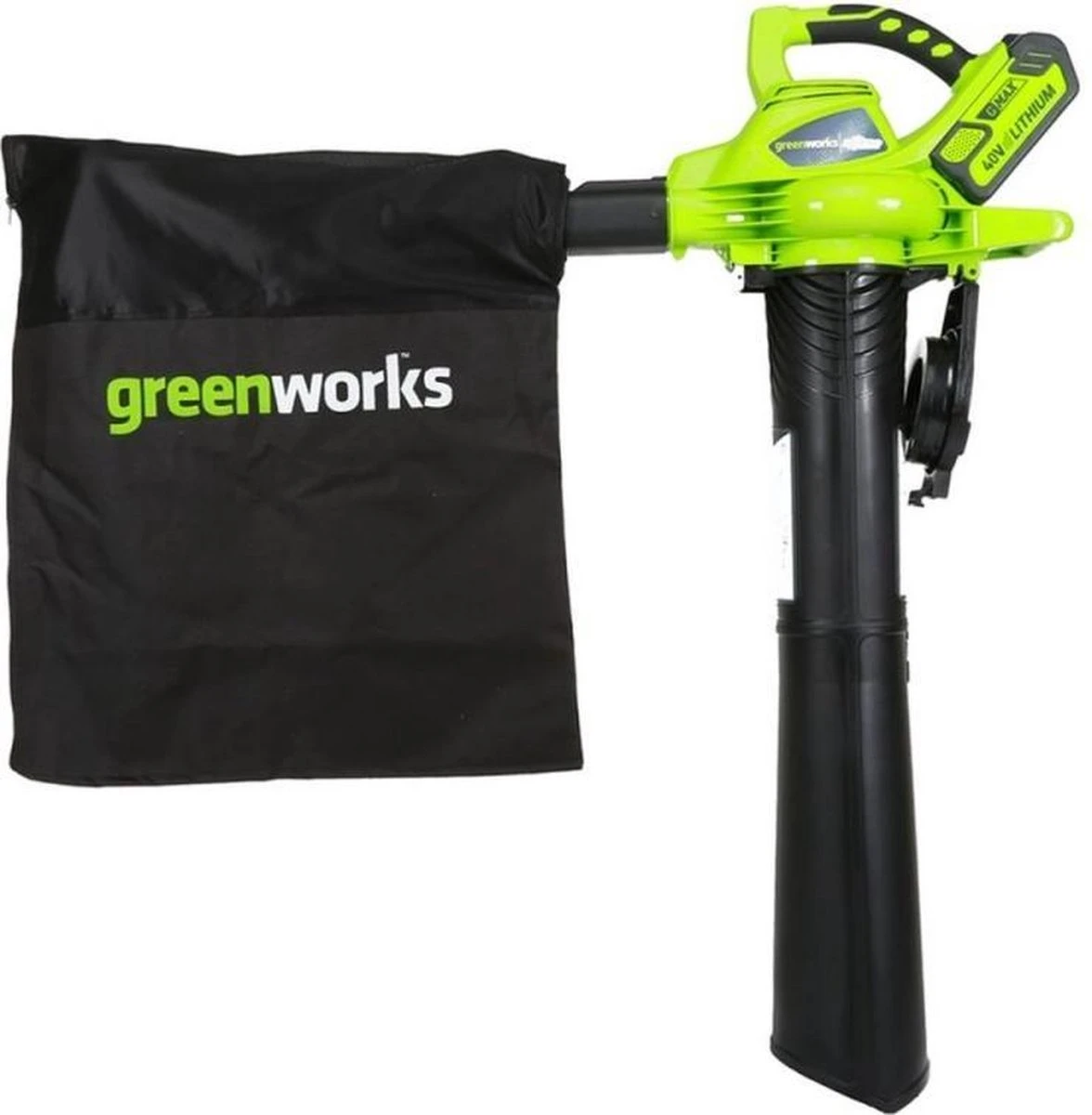 Ce souffleur / aspirateur à batterie Greenworks 40 V GD40BV est idéal pour nettoyer les terrains et les jardins. Vous pouvez facilement basculer entre l’aspiration et le soufflage sans utiliser d’outils. Il a une vitesse variable et un régulateur de vitesse pour une facilité d’utilisation et un rotor métallique avec un rapport de mulching de 10: 1. Le sac de collecte de 45 litres inclus garantit que vous avez terminé le travail avant que le sac ne doive être vidé. Tous les outils sans fil de la gamme Greenworks fonctionnent sur la même batterie, vous n’avez donc besoin que d’une seule batterie pour alimenter tous vos outils Greenworks avec la même tension. Avec 2 batteries, vous pouvez travailler encore plus longtemps car vous pouvez utiliser une batterie tout en chargeant l’autre. Très utile! Attention, le souffleur de feuilles GD40BV nécessite également une batterie 40 V – 2 Ah/ 4 Ah et un chargeur universel 40 V , ceux-ci ne sont pas inclus!