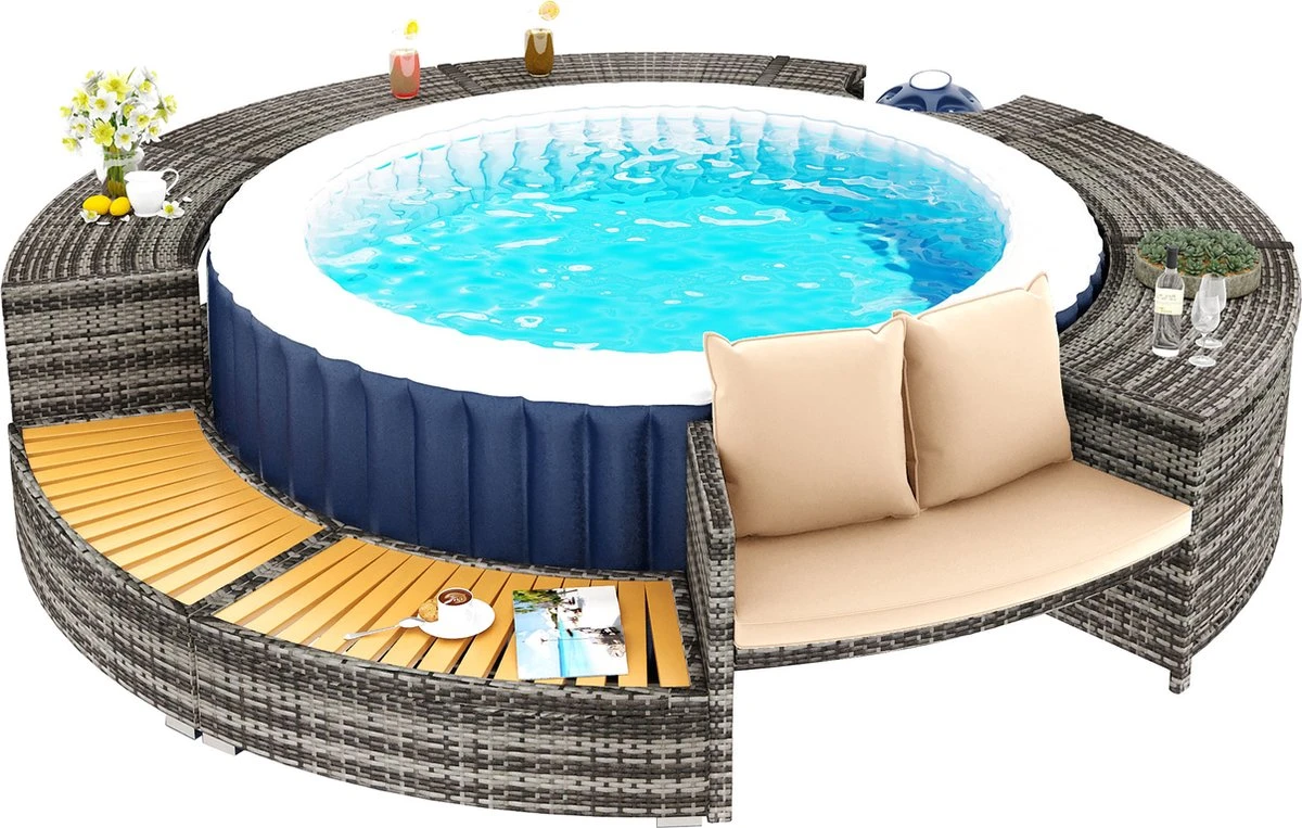 【ENCADREMENT DE BAIGNOIRE FONCTIONNEL】 Cet élégant contour de bain à remous en poly rotin est un accessoire polyvalent pour votre spa. Donne au spa un look chic et moderne, tout en créant un espace spa plus fonctionnel et convivial.