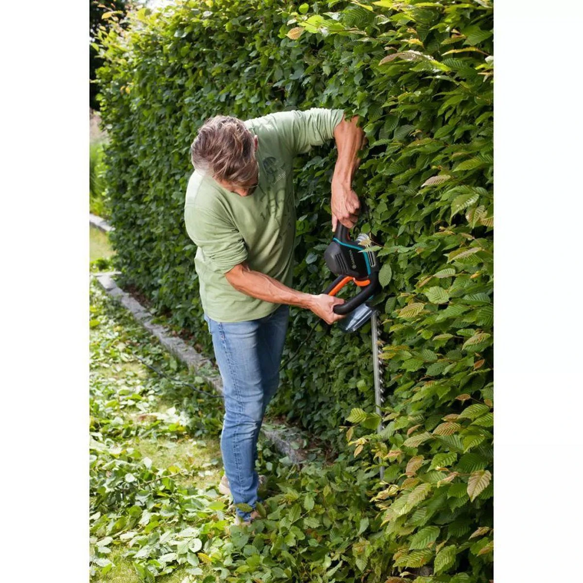 • Après utilisation, vaporisez le taille-haie avec le spray d’entretien spécial GARDENA. Cela empêche la rouille et garantit que les ciseaux restent utilisables pendant longtemps.