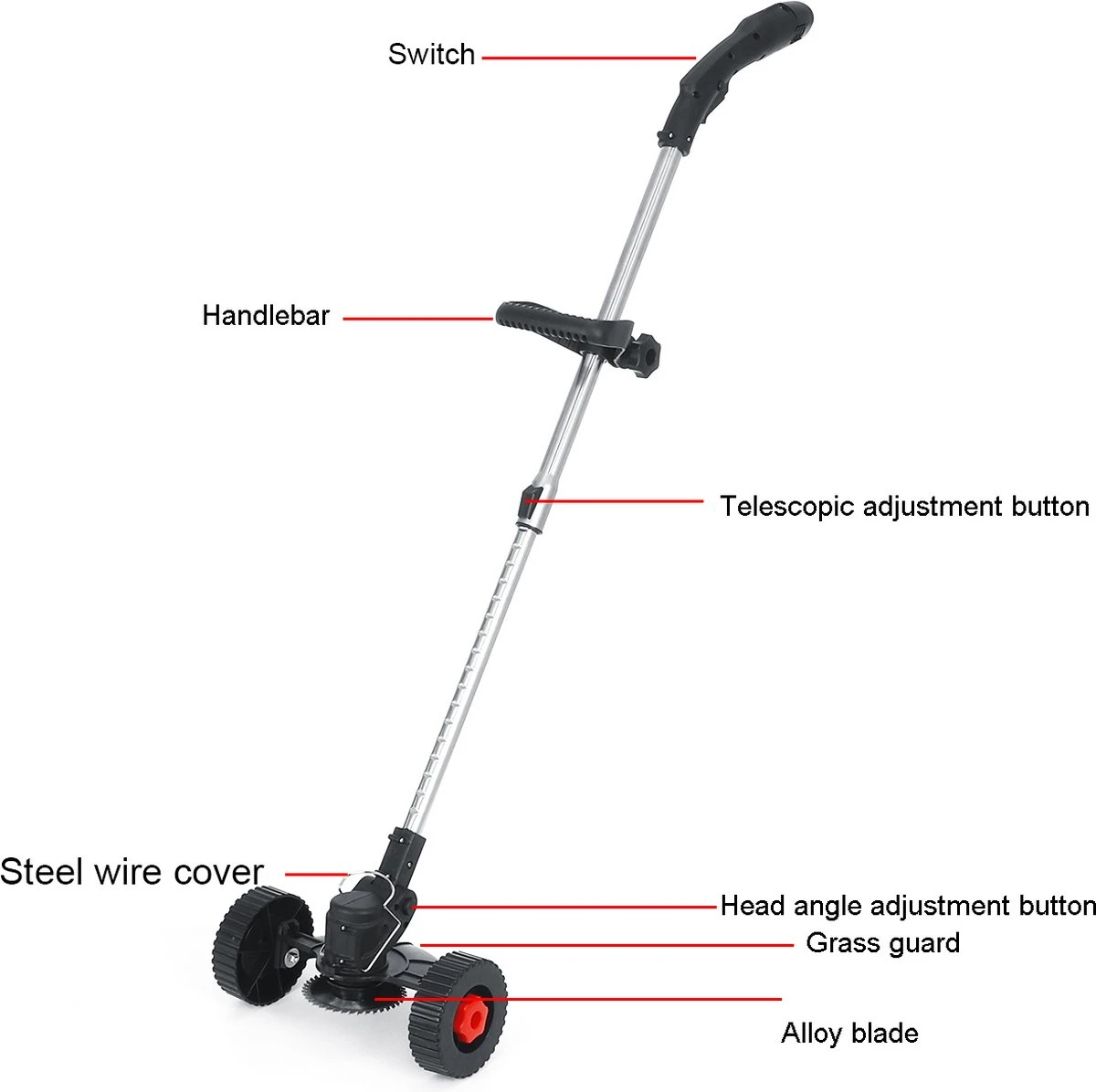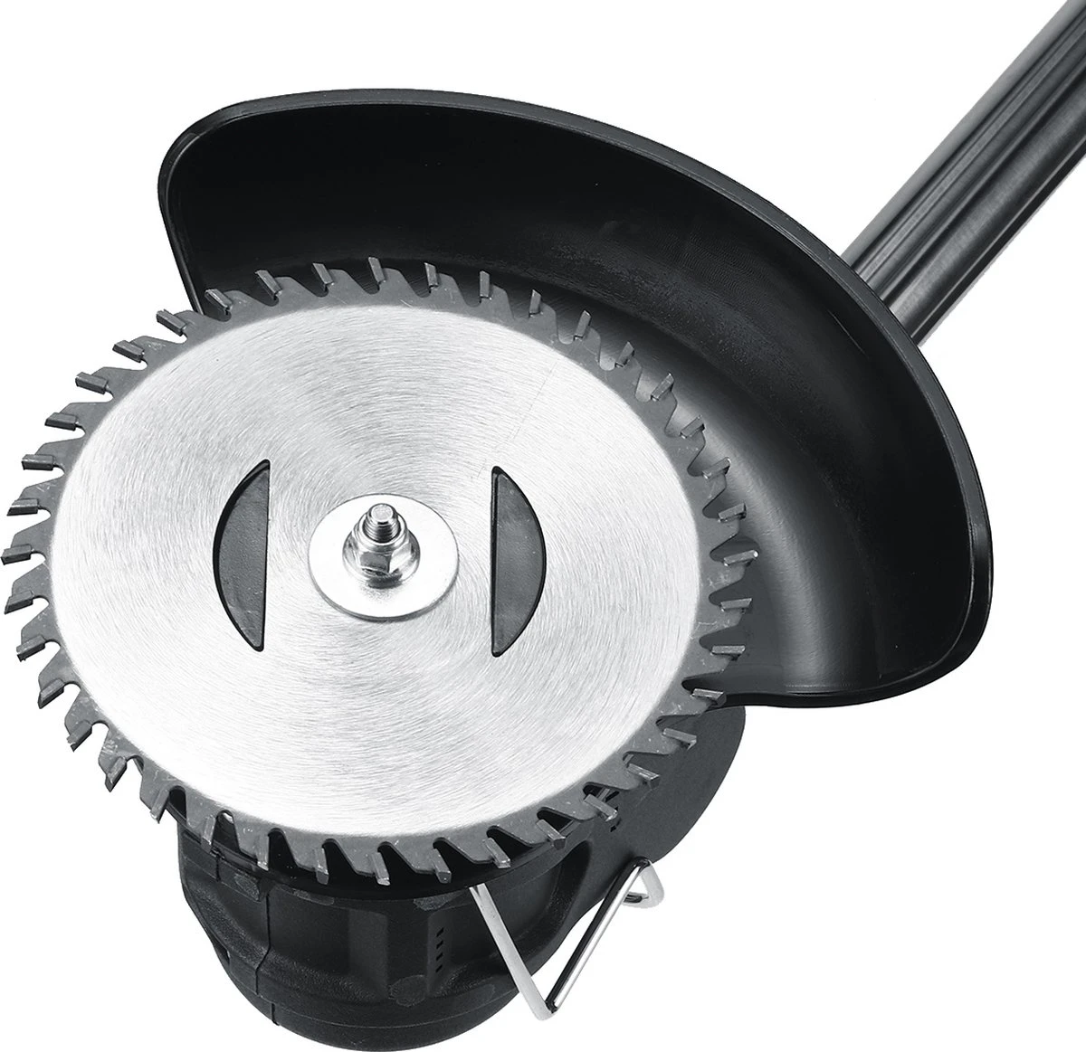 - Angle de tête réglable à 180° pour tailler facilement les endroits difficiles d’accès, tels que sous les arbres, les coins, les parterres de fleurs, etc.