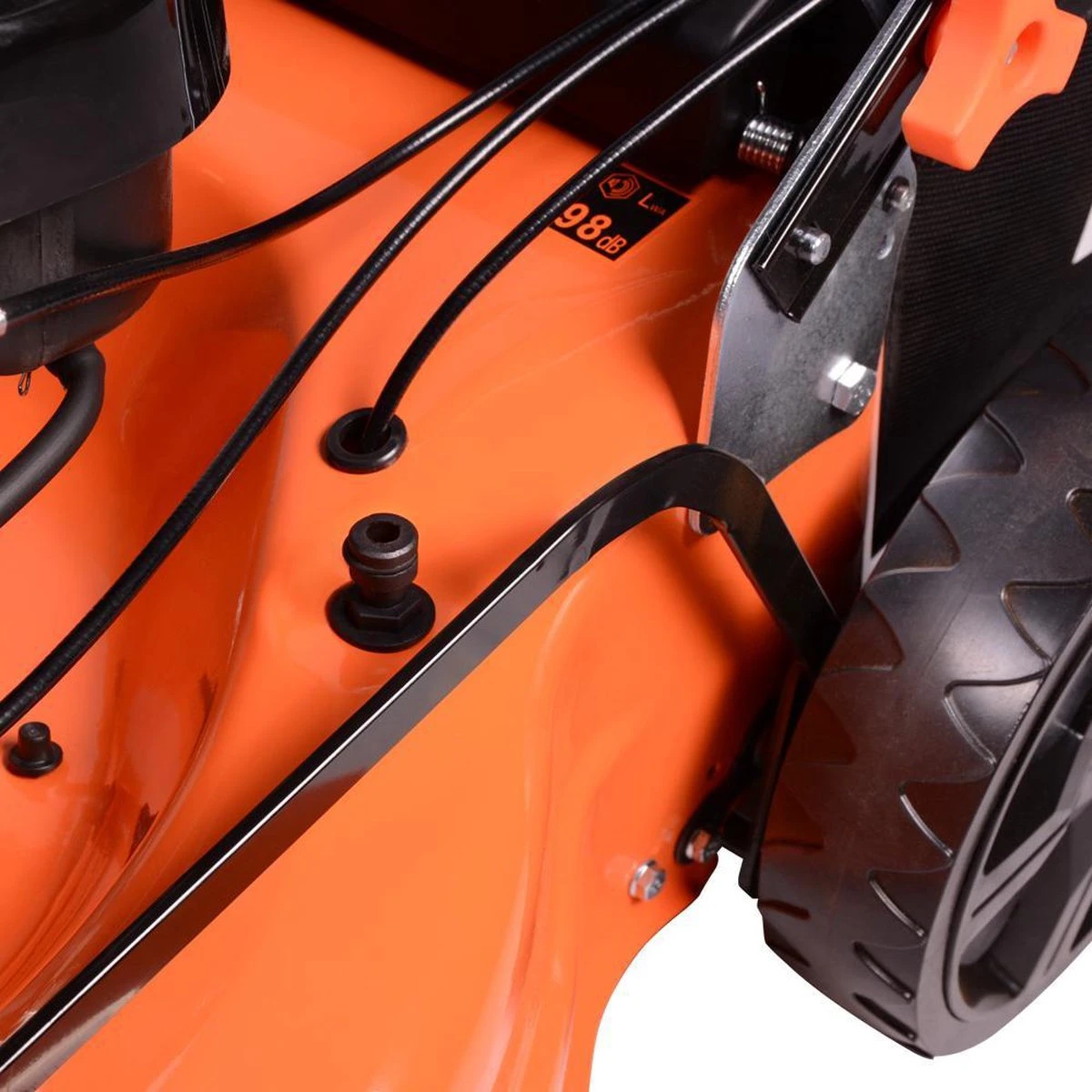 La tondeuse à gazon est équipée d’un puissant moteur 4 temps de 196 cm3 / 4,7 ch et est donc entièrement sans fil. De plus, grâce à la fonction d’autopropulsion, le travail avec la tondeuse à gazon n’est pas physiquement fatigant. Avec une largeur de coupe d’au moins 53 cm, cette tondeuse à moteur est idéale même pour les plus grandes pelouses. La tondeuse à gazon est très maniable et possède des roues de 10 pouces, ce qui permet de la conduire facilement sur n’importe quel terrain.