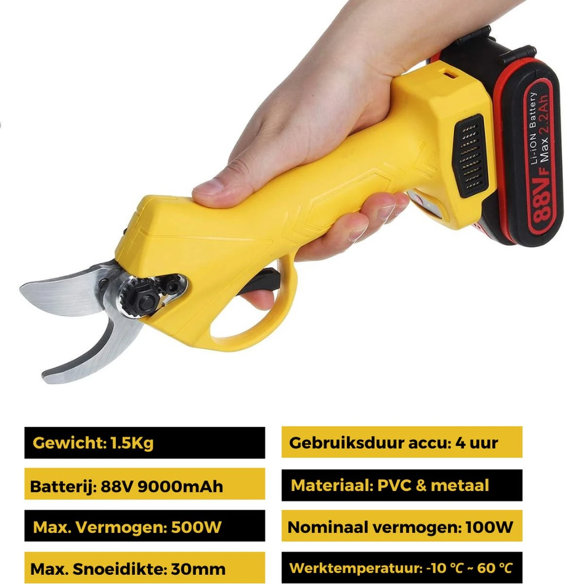 Trouvez-vous aussi la façon traditionnelle de tailler fatigante et lourde ? Alors nos sécateurs électriques sont la solution voor jou! Avec le sécateur électrique ça marchesur la batterie vous pouvez tailler facilement, sans effort, en économisant de l’énergie et sans surcharge ! En utilisant ces sécateurs, vous économisez beaucoup d’énergie et de temps, ce qui vous permet de travailler de manière plus productive. Evitez de surcharger vos mains ou vos poignets lors de l’entretien de votre jardin en utilisant nosSécateur électrique VIOLEWORKS® !