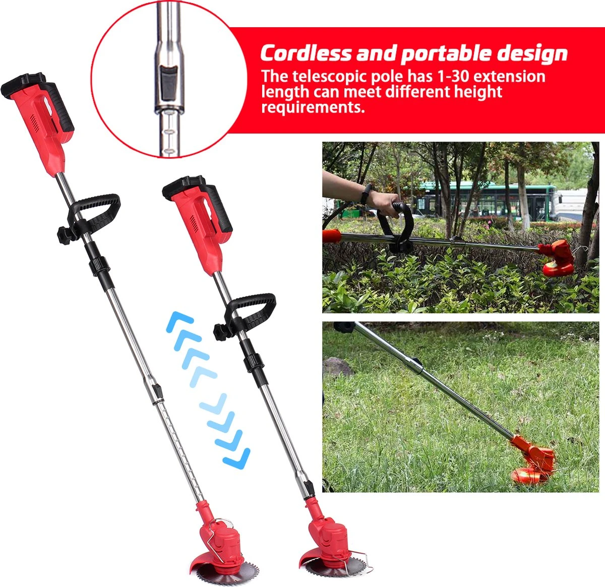 - Facile à manipuler les nids-de-poule, les terrains vallonnés, les bordures de pelouse, les parterres de fleurs, les jardinières et autres zones.